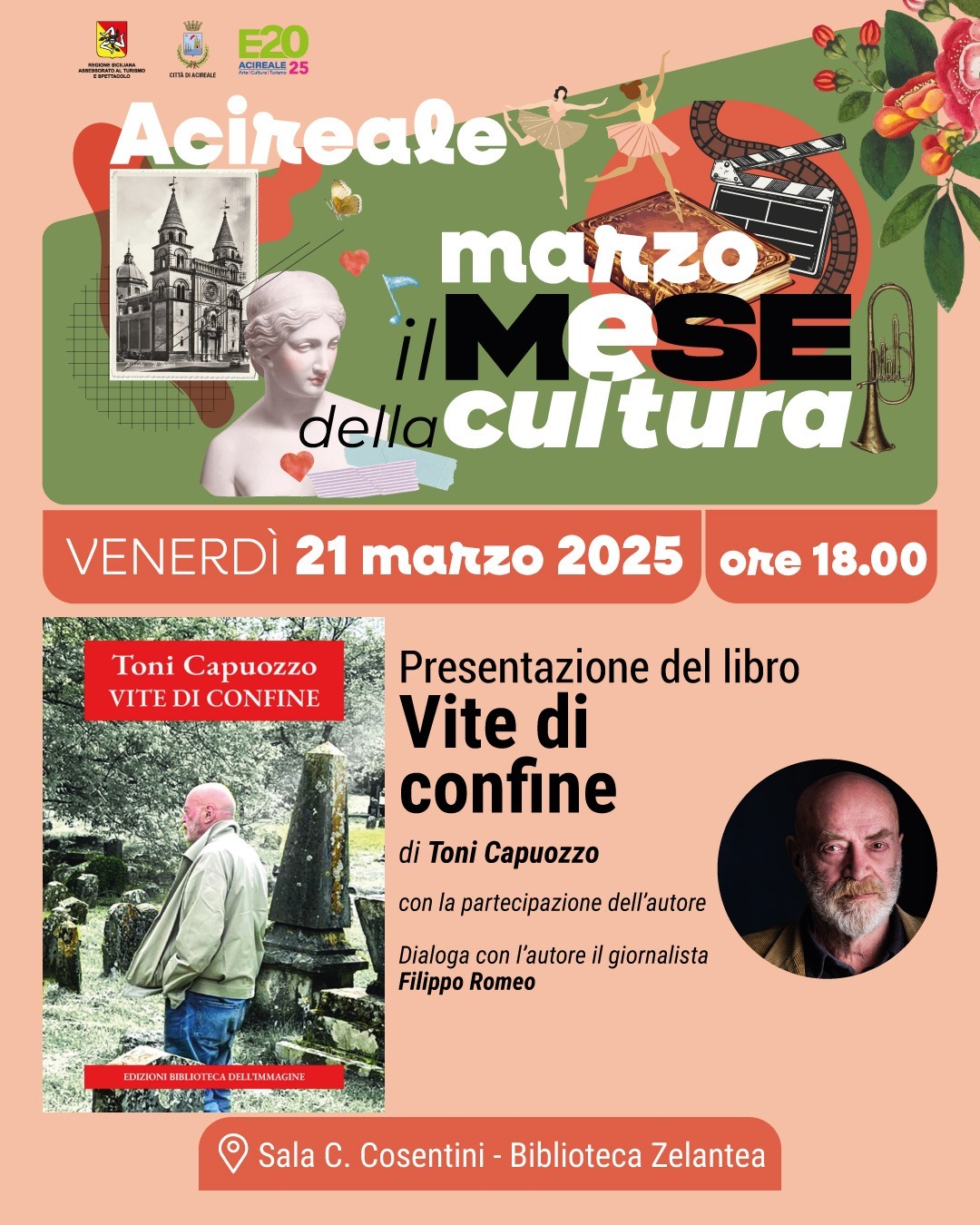 Marzo il “Mese della Cultura” è un contenitore di eventi organizzato dalla Città di Acireale, in collaborazione con la Diocesi di Acireale, l’Accademia dei Dafnici e degli Zelanti, la Fondazione Bellini, la Pro Loco e tante associazioni culturali e con il sostegno della Regione Siciliana. Il “Mese della Cultura” fa parte del programma annuale Acireale E2025.